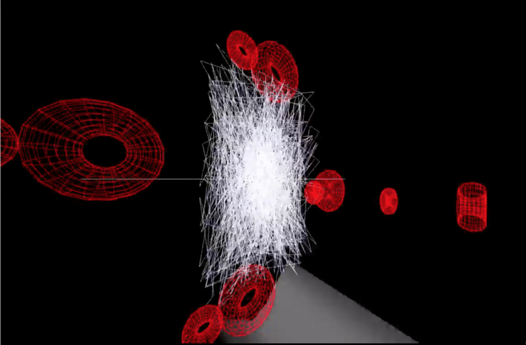 我們所輸入的聲音資訊,會經由MSP物件peakamp~來分析其音量極值,並將數據送出(send)給jit.gl系列的影像處理物件,實現即時聲音互動。在界面裡可調整三個不同的視覺區塊,可自定義如色彩、視角、反射等效果。參考示範影片並一起來試試看吧!