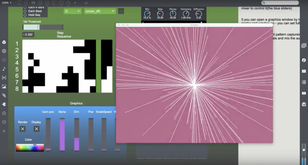 在生成音樂的同時,patcher也產生即時回饋的視覺畫面,可手動改變調整效果變化。