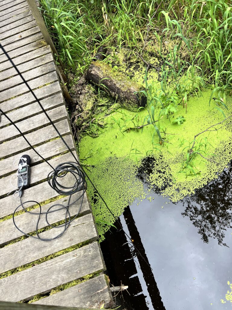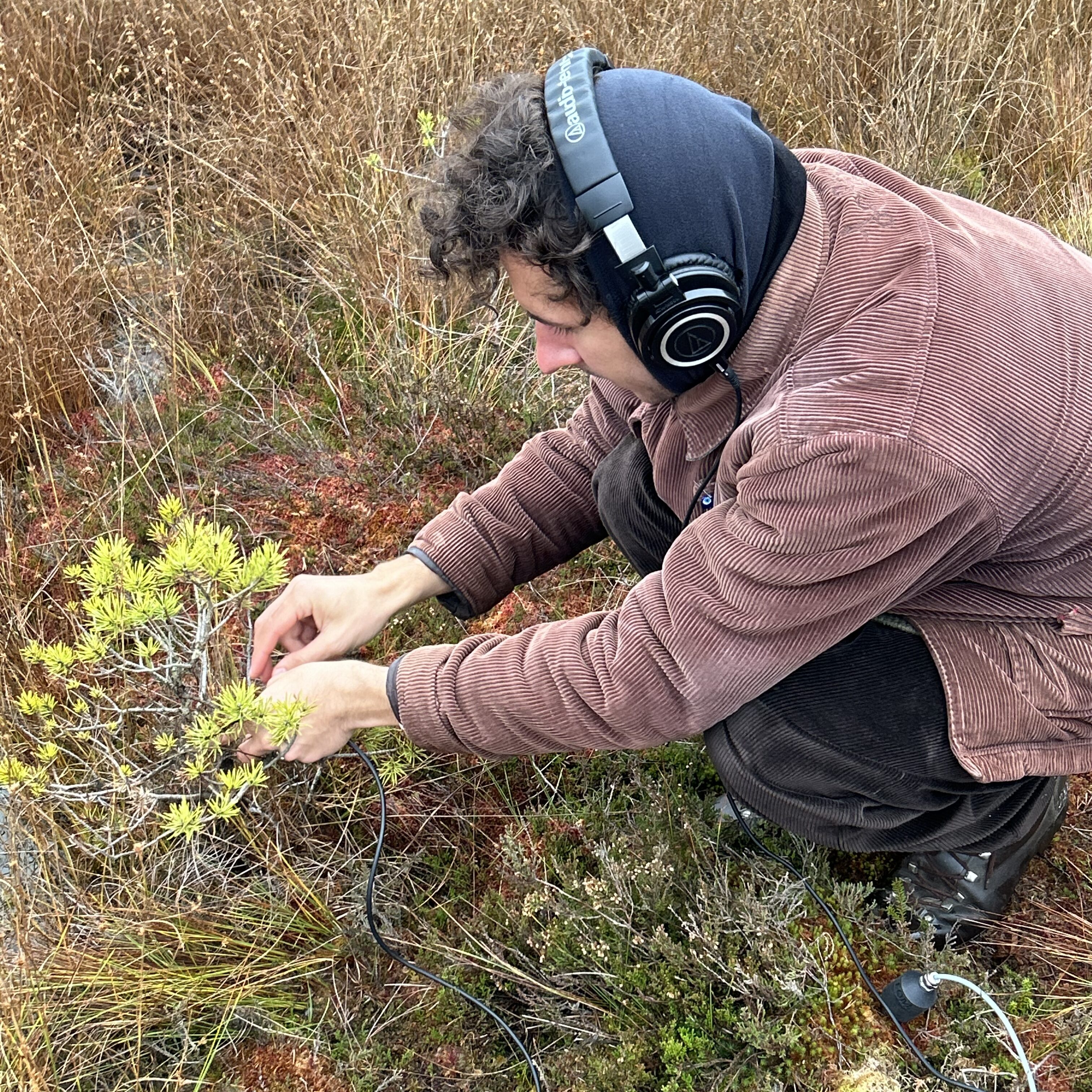 段沐於 2025 年秋季進駐 RIXC,以拉脫維亞 Ķemeri National Park 的泥炭沼澤為核心,展開對碳循環、濕地聲景與植物生命的研究。他多次步行進入沼澤地帶,觀察濕地地貌、苔癬群落的色層變化、土壤濕度與氣候條件,累積大量影像、筆記與現地感知資料 。在聲音研究上,他使用感測器貼附於苔癬、地表與樹木,記錄微弱振動、植物內部的聲響與環境微音,建立跨物種聲景資料庫。