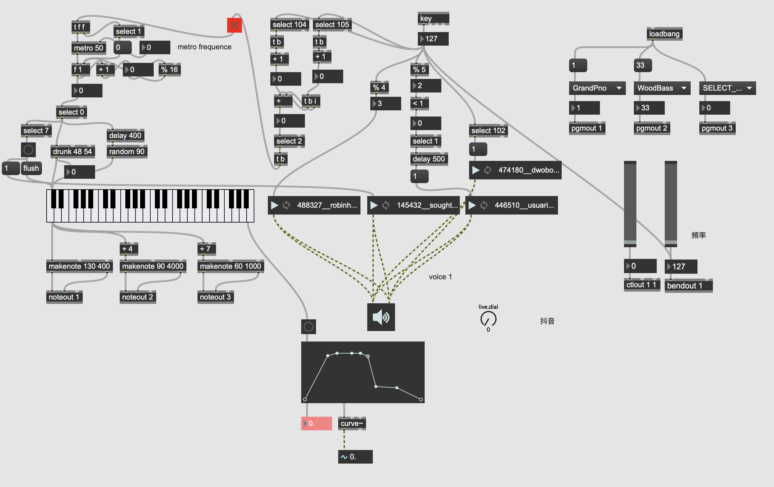 並且可以隨機彈奏鍵盤去觸發一些freesound的怪怪小聲音
