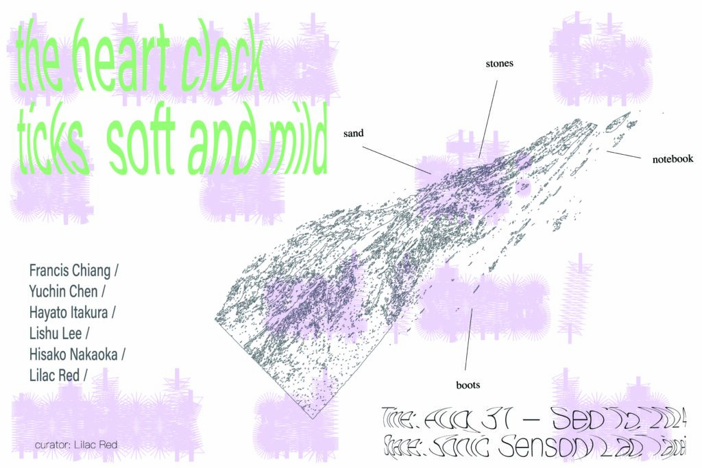 本次展覽由策展人 賈梨,邀請六位藝術家:賈梨、陳瑜璟、李莉姝、江守恩、Hisako Nakaoka、Hayato Itakura,於 聲化感官實驗室 共同展出。